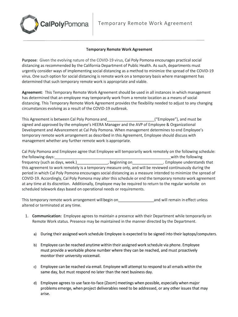 Temporary Remote Work AgreementTemporary Remote Work Agreement