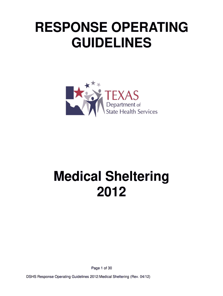 Get the free DSHS Response Operating Guidelines 2012:Medical Sheltering (Rev