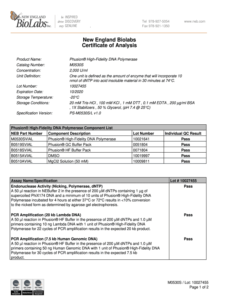 Researchers and laboratories performing PCR experiments requiring high-fidelity DNA amplification are required to use and file Phusion High-Fidelity DNA Polymerase.
