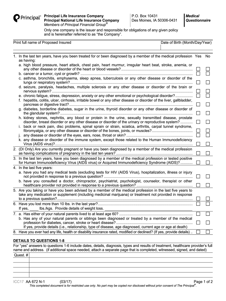 How to fill out principal life insurance company