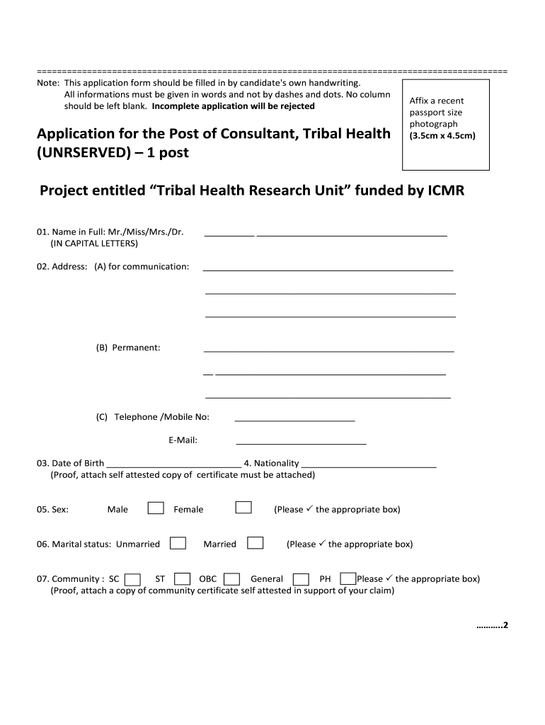 Note: This application form should be filled in by candidate's own handwriting. All information must be given in words and not by dashes and dots. No column Affix a recent should be left blank. Incomplete