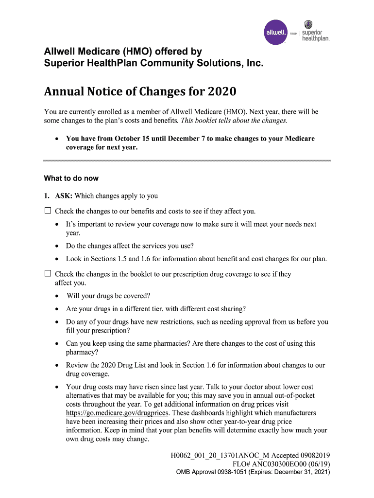 Superior Healthily Community Solutions, Inc. Annual Notice of Changes for 2020You are currently enrolled as a member of All well Medicare (HMO). Next year, there