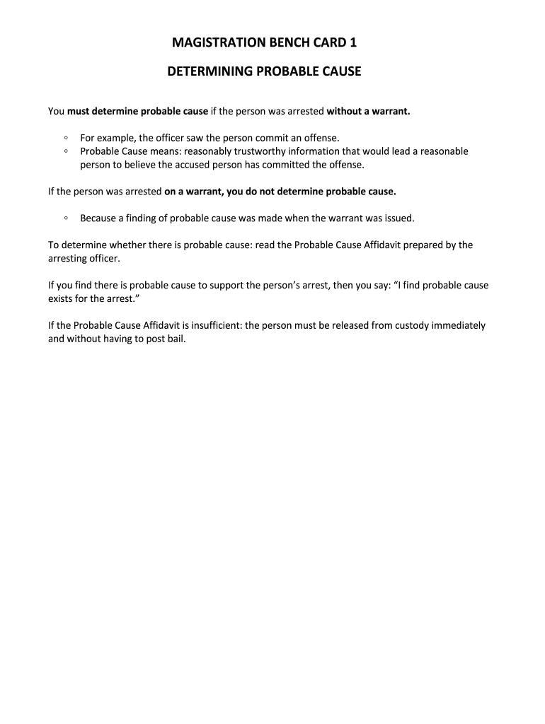 REGISTRATION BENCH CARD 1 DETERMINING PROBABLE Because You must determine probable cause if the person was arrested without a warrant. For example, the officer saw the person commit an offense. Probable