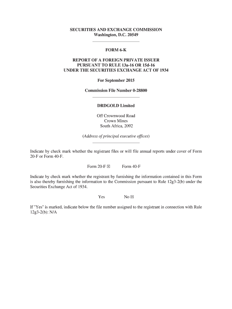 SECURITIES AND EXCHANGE COMMISSION Washington, D.C. 20549 FORM 6K REPORT OF A FOREIGN PRIVATE ISSUER PURSUANT TO RULE 13a16 OR 15d16 UNDER THE SECURITIES EXCHANGE ACT OF 1934 For September 2015 Commission