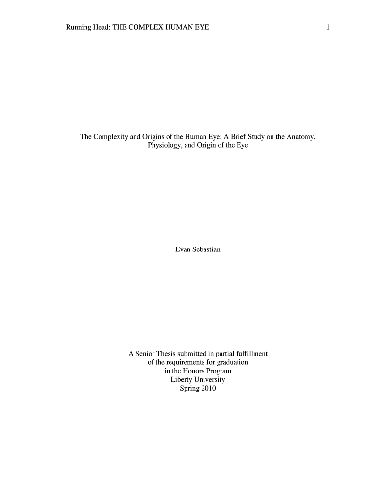 Physiology, and Origin of the Eye Evan Sebastian Senior Thesis submitted in partial fulfillment