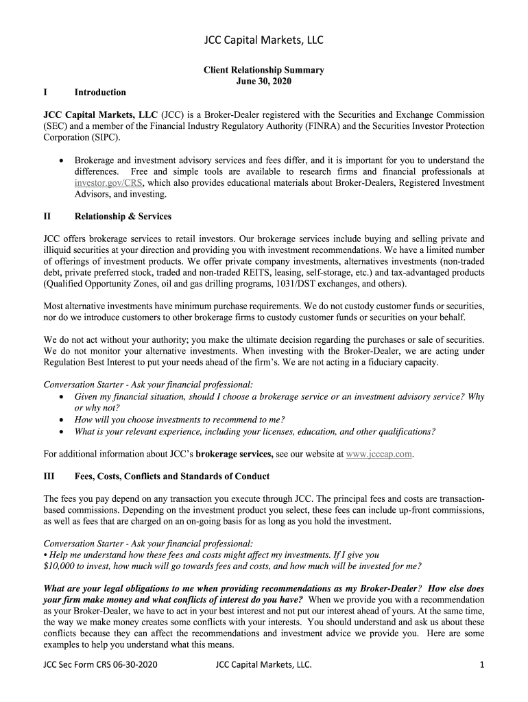 Get the free JCC - Form CRS 1.0