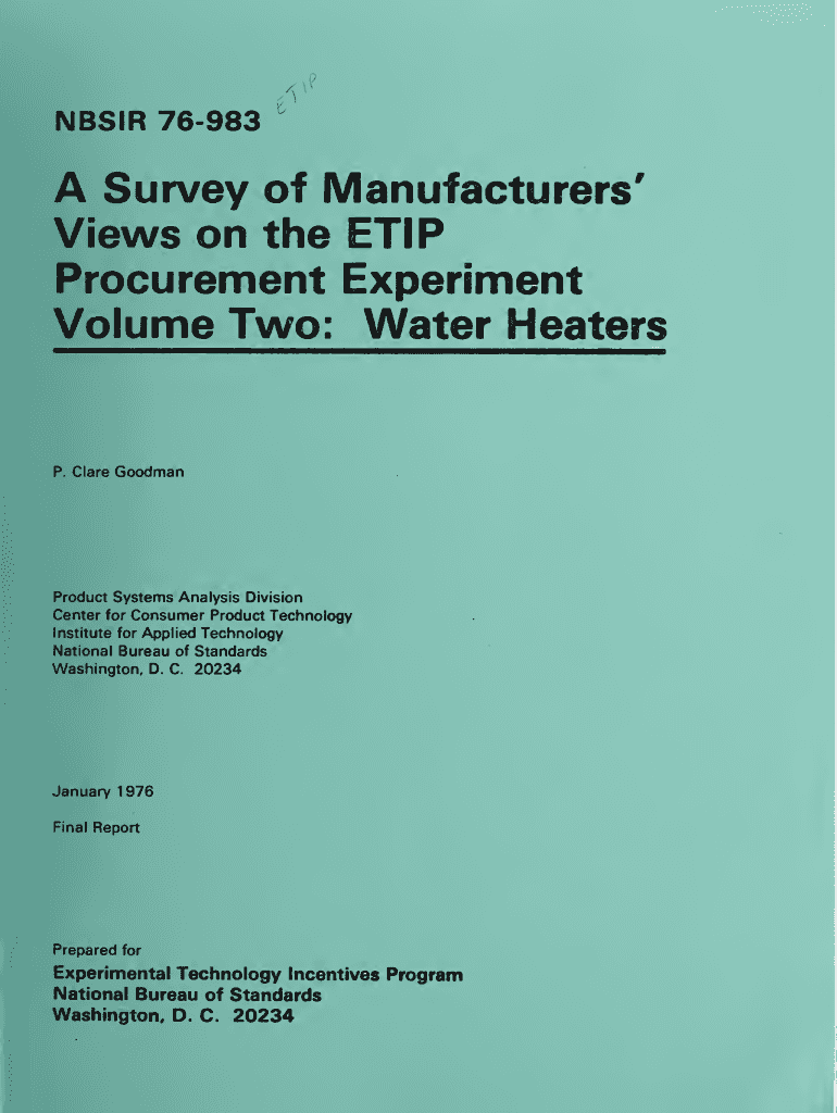 Procurement ExperimentVolume Two: Water Heaters. ClareGoodmanProduct Systems Analysis Division
