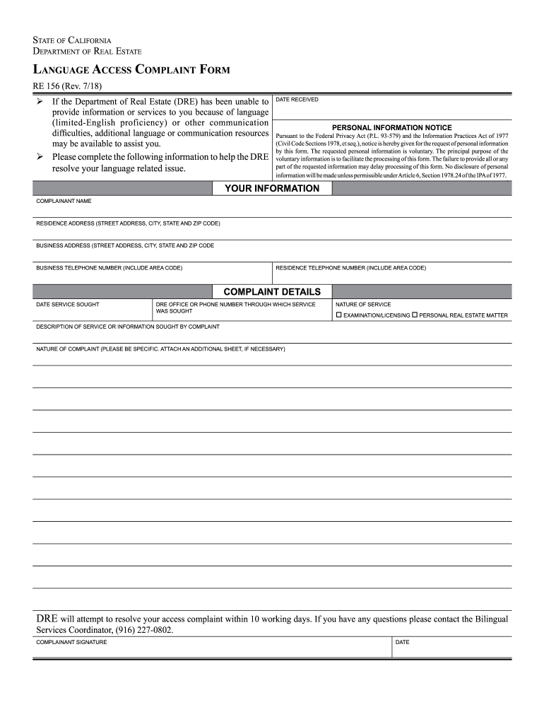 Get the free RE 156 Language Access Complaint, Rev 7/18. RE 156 Language Access Complaint, Rev 7/18