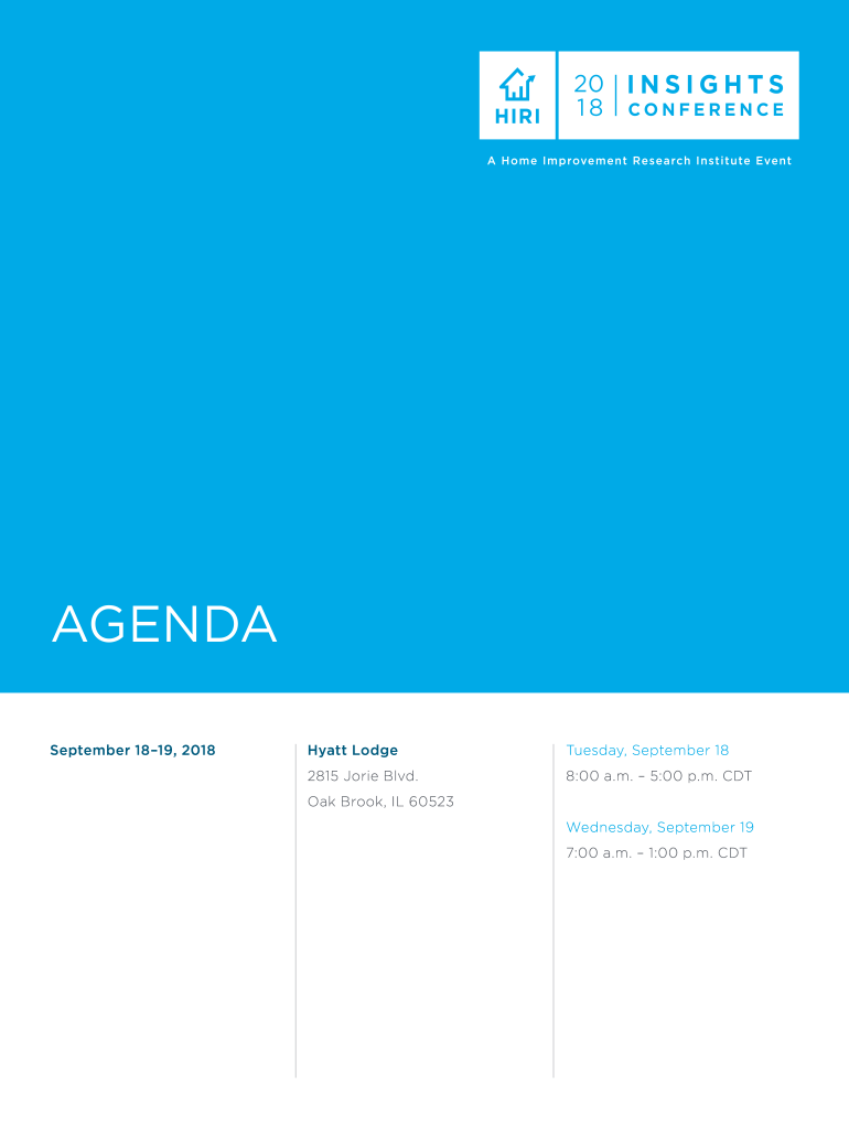 AGENDA September 1819, 2018Hyatt Lodge Tuesday, September 182815 Jorge Blvd.8:00 a.m. 5:00 p.m. Cloak Brook, IL 60523 Wednesday, September 19 7:00 a.m. 1:00 p.m. CATHAY 1 Tuesday, September 18, 2018Beverages