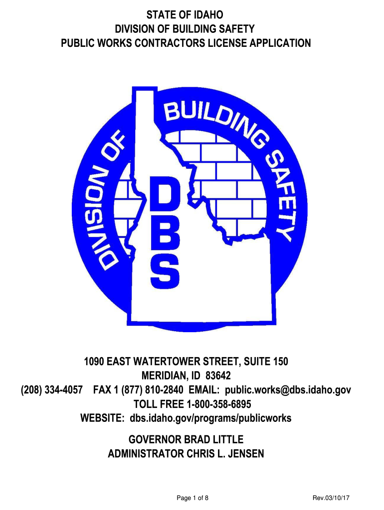 (208) 3344057 FAX 1 (877) 8102840 EMAIL: public.works@dbs.idaho.gov