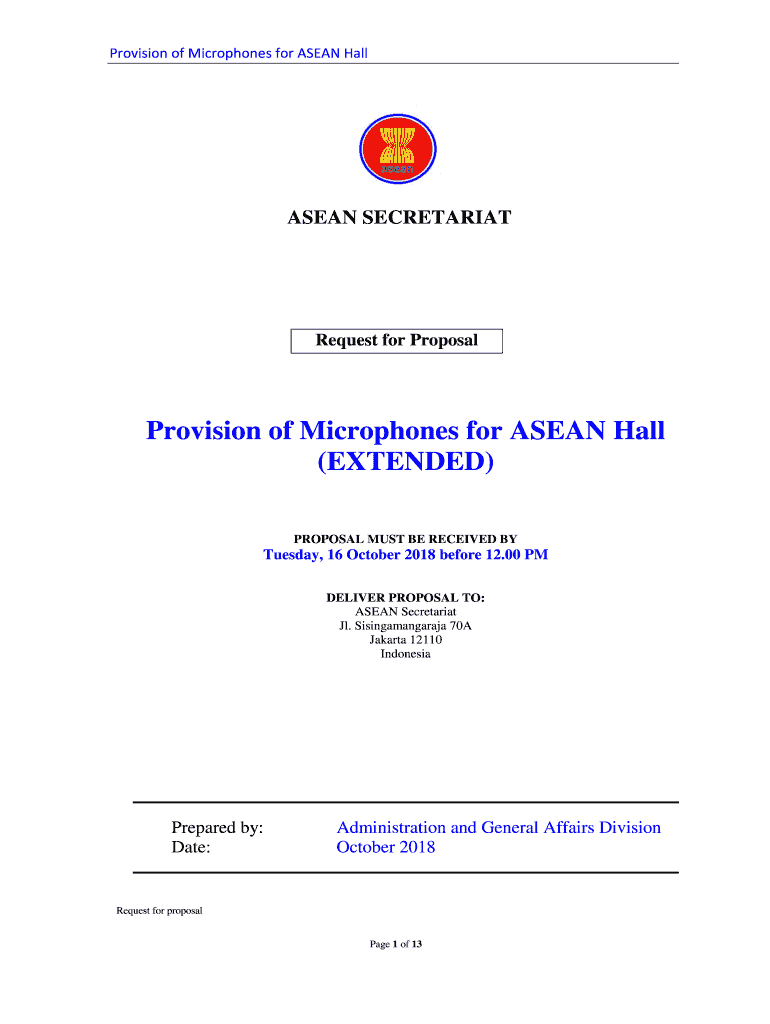 Provision of Microphones for ASEAN Halloween SECRETARIATRequest for ProposalProvision of Microphones for ASEAN Hall