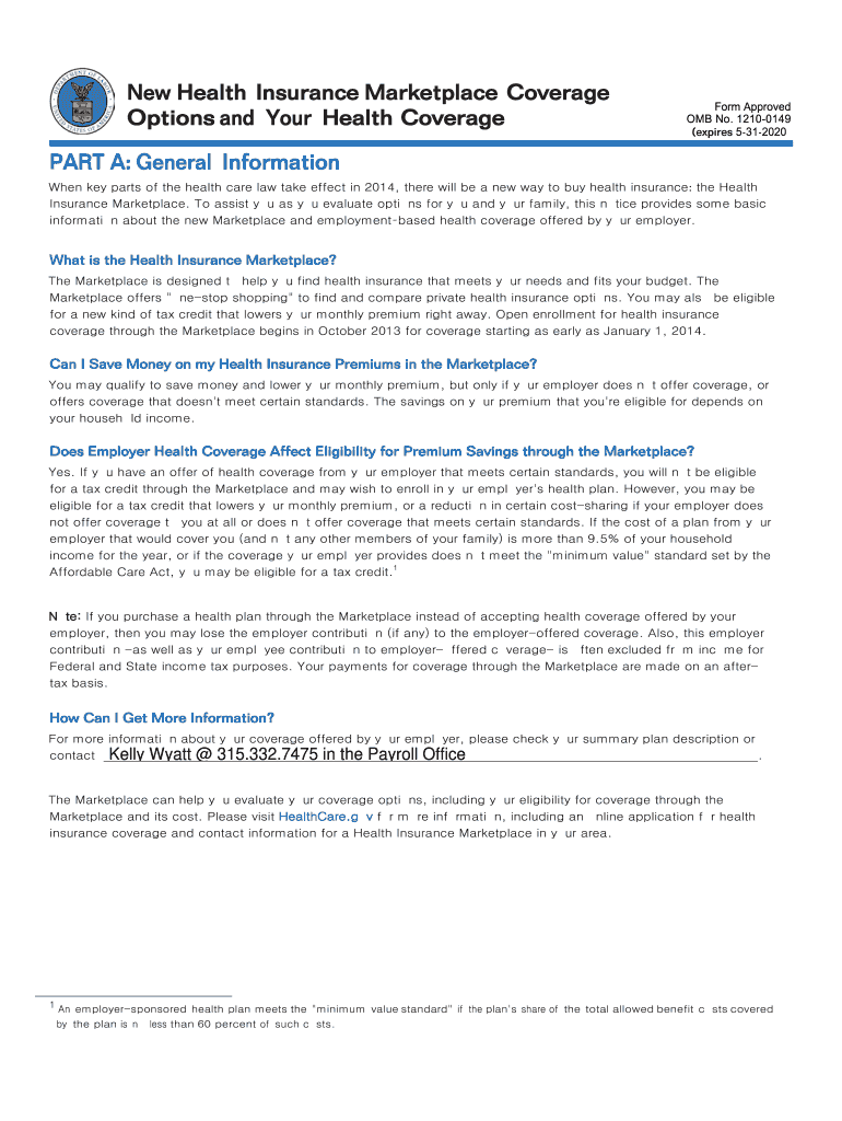 New Health Insurance Marketplace Coverage Options and Your Health CoverageForm Approved OMB No. 12100149H SLUHV5312020PART A: General Information :
