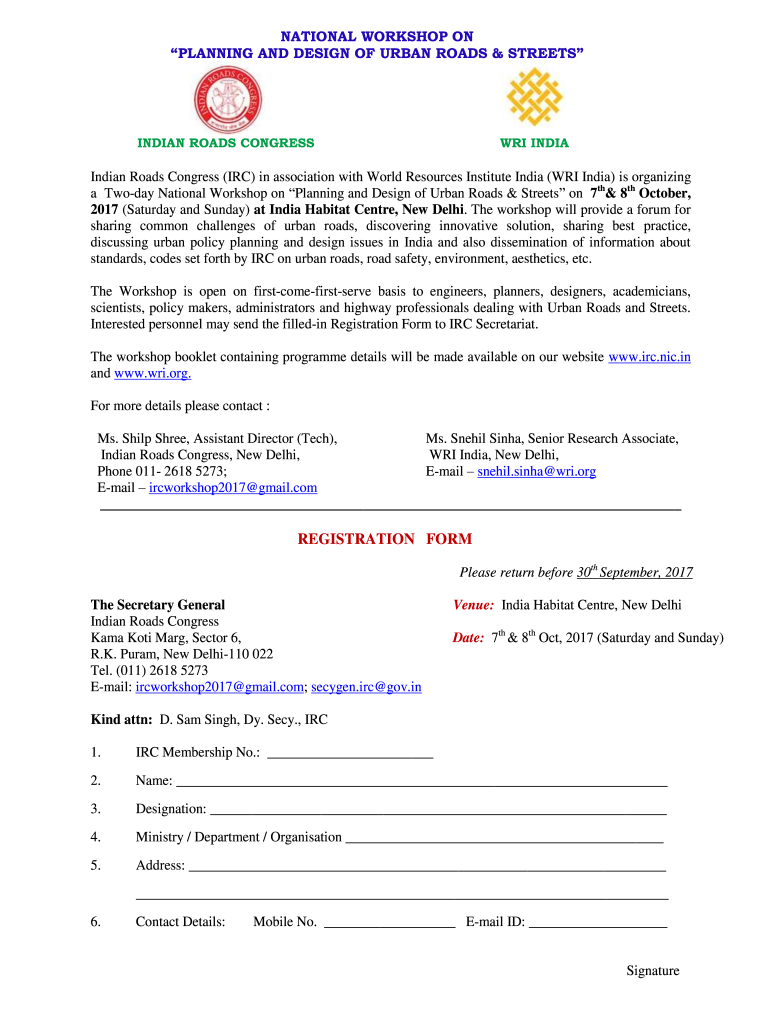 Get the free NATIONAL WORKSHOP ON PLANNING AND DESIGN OF URBAN ROADS ...