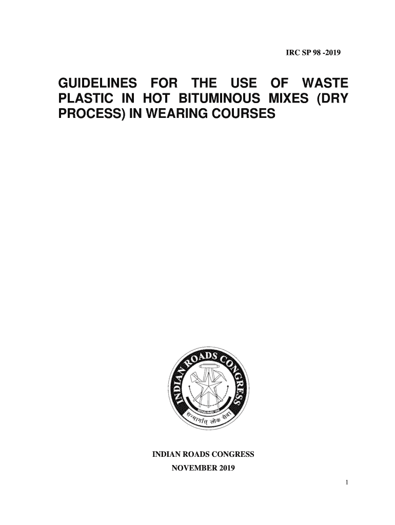IRC SP 98 2019GUIDELINES FOR THE USE OF WASTE