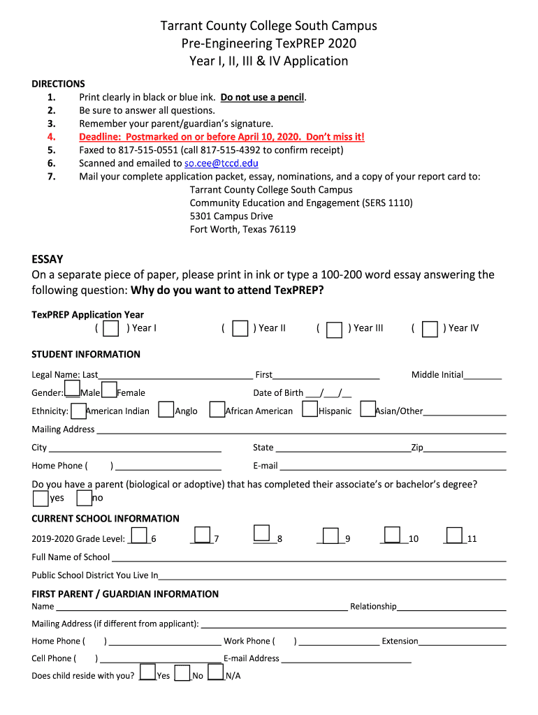 Get the free Year I, II, III, IV Application