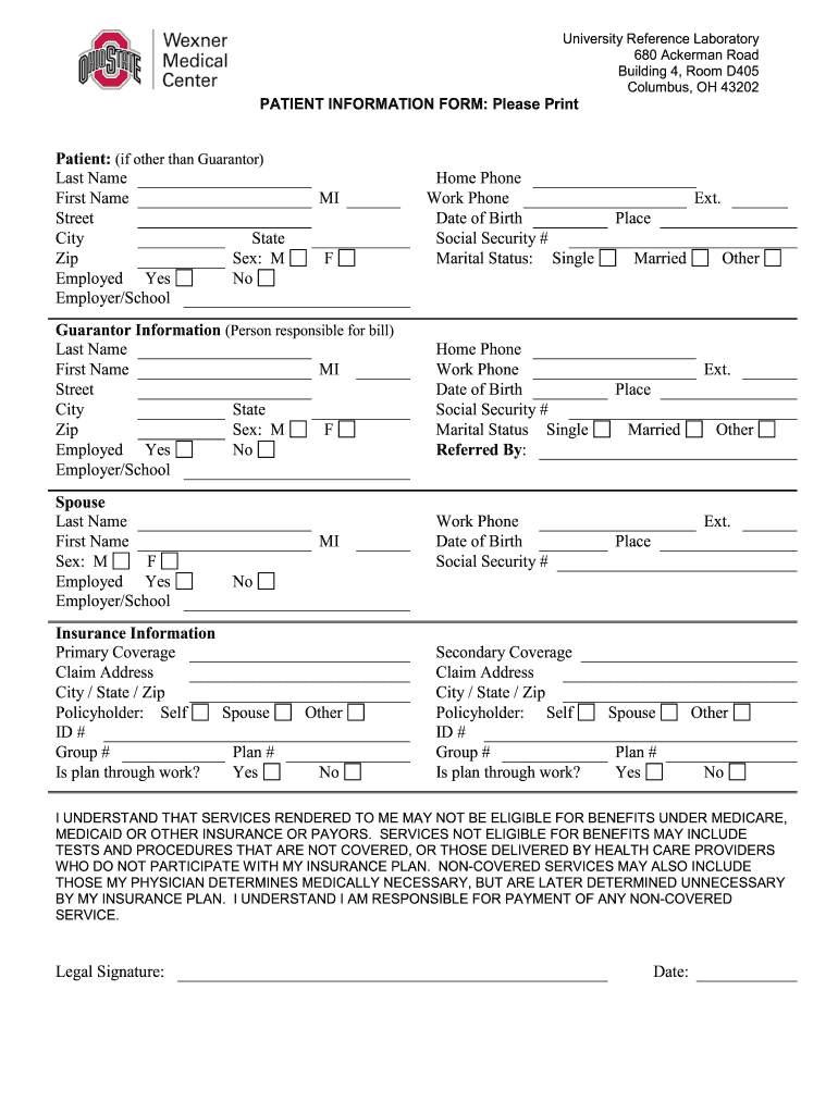 Columbus, OH 43202PATIENT INFORMATION FORM: Please Inpatient: (if other than Guarantor)