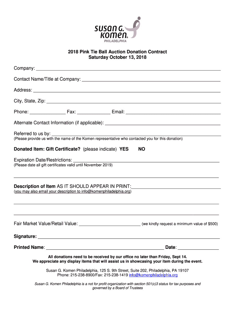 Get the free 2018 Pink Tie Ball Auction Donation Contract Saturday October ...