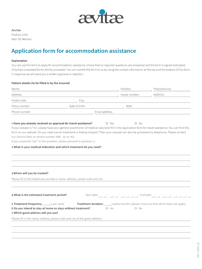Get the free Application form for accommodation assistance