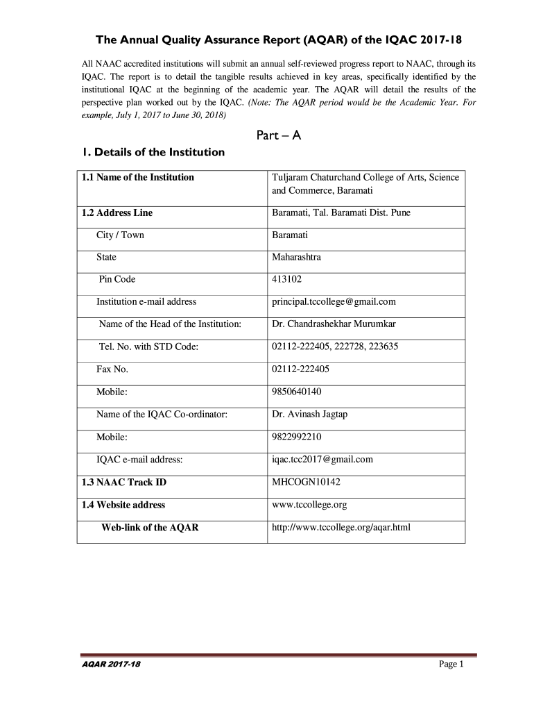 Get the free (Note: The AQAR period would be the Academic Year. For ...