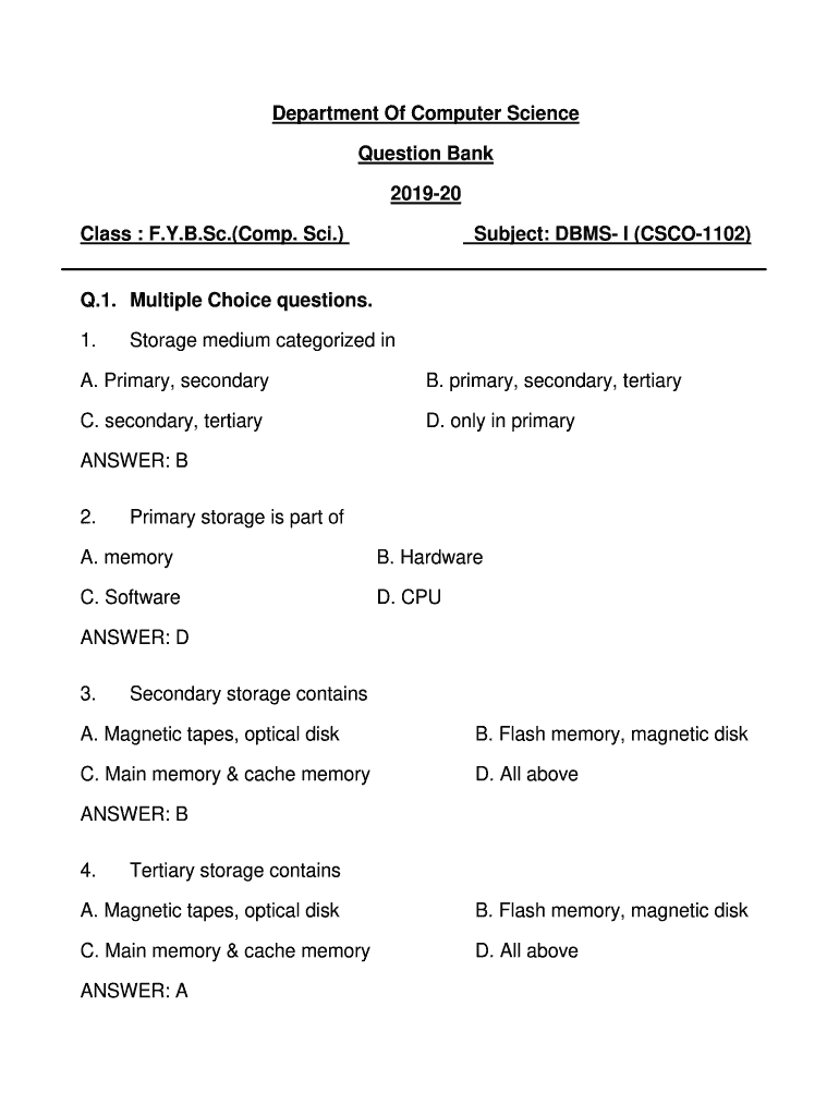 Get the free Department Of Computer Science Question Bank 2019-20 Q.1 ...