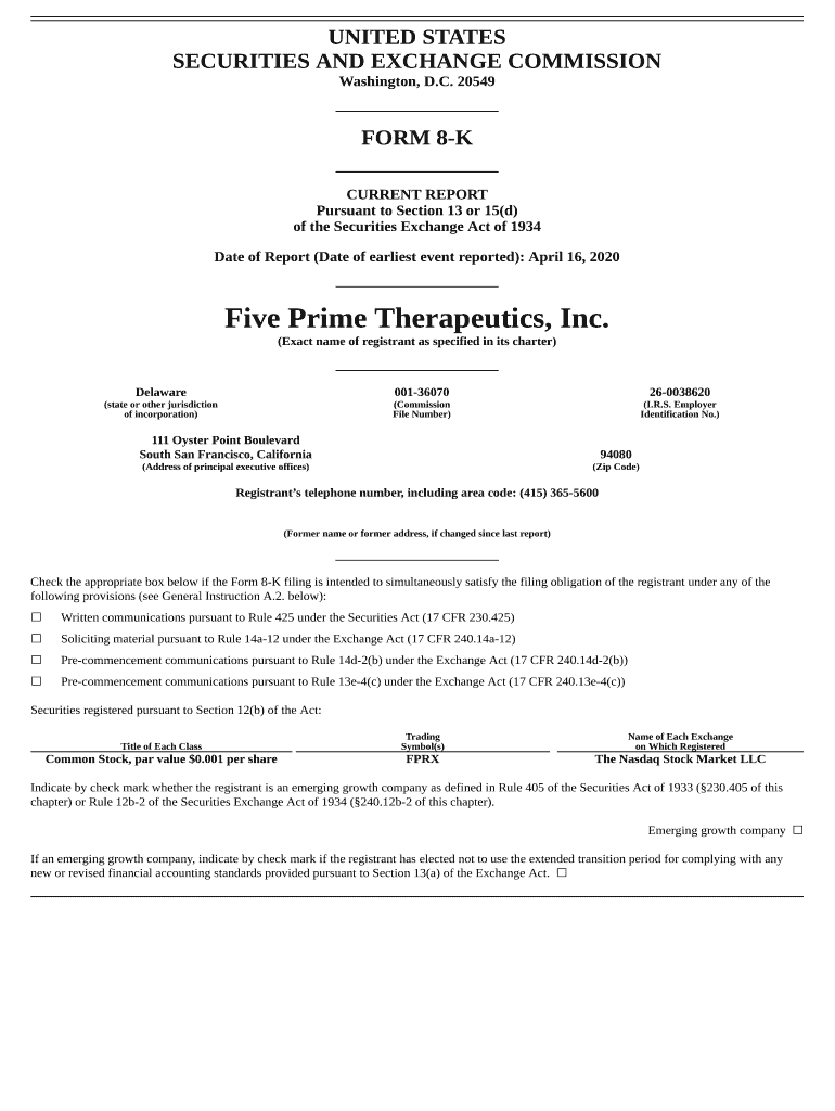 Get the free Date of Report (Date of earliest event reported): April 16, 2020