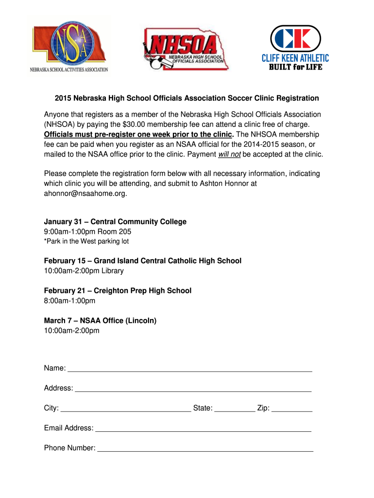 2015 Nebraska High School Officials Association Soccer Clinic Registration
