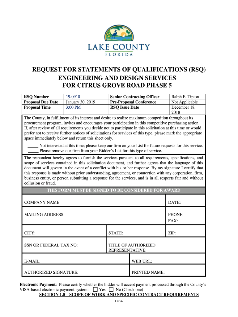 REQUEST FOR STATEMENTS OF QUALIFICATIONS (RSA)