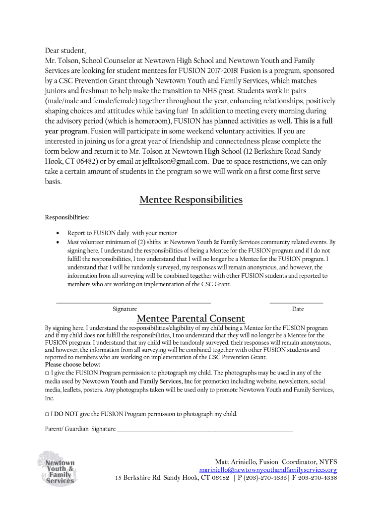 Services are looking for student mentees for FUSION 20172018! Fusion is a program, sponsored
