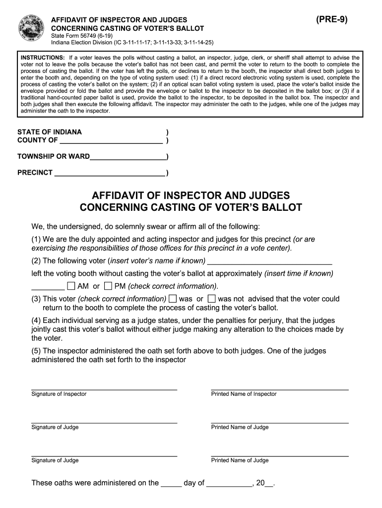 Indiana Election Division (IC 3111117; 3111333; 3111425)INSTRUCTIONS: If a voter leaves