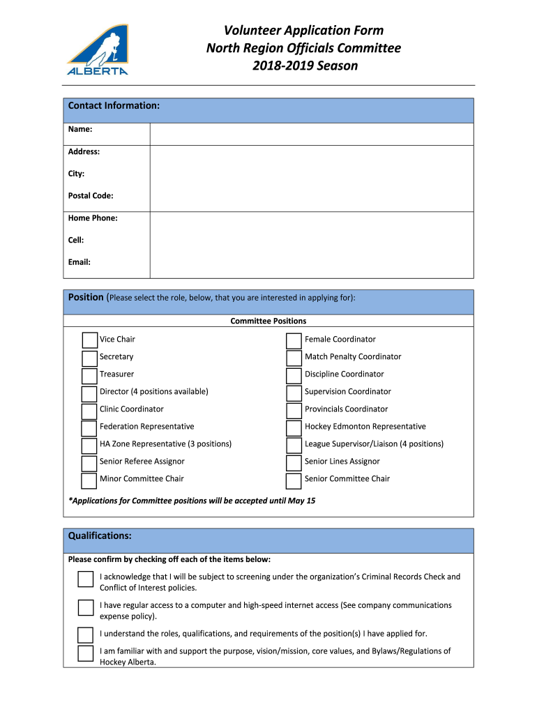 Get the free Volunteer Application Form North Region Officials Committee ...
