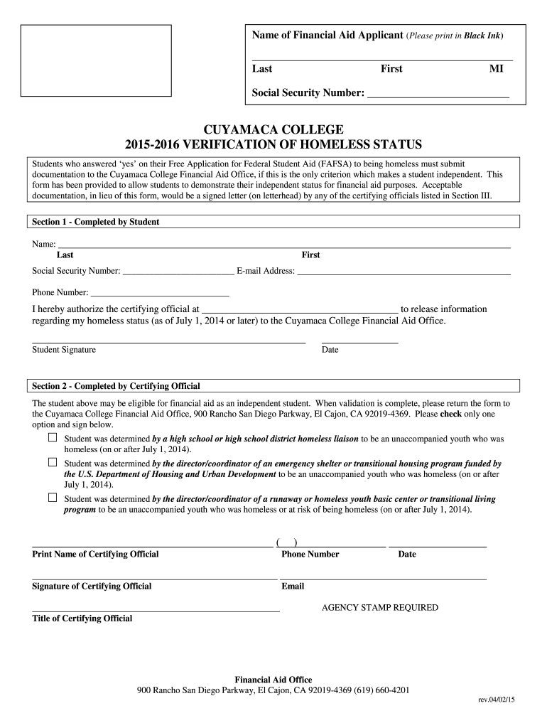 Name of Financial Aid Applicant (Please print in Black Ink)