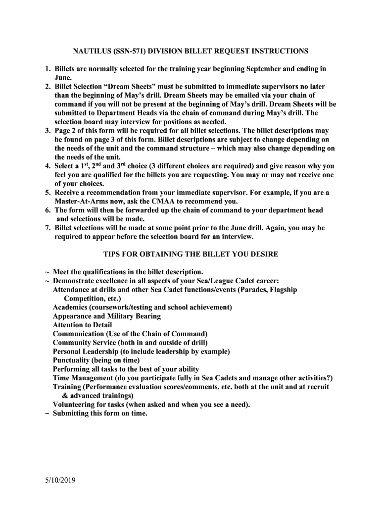 The nautilus billet request form may require information such as personal details, desired location or duty, experience, and qualifications.