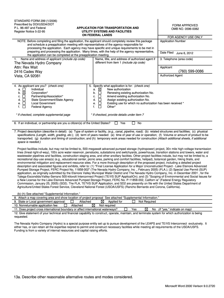 To fill out the form for Nevada Hydro Company, follow these steps: