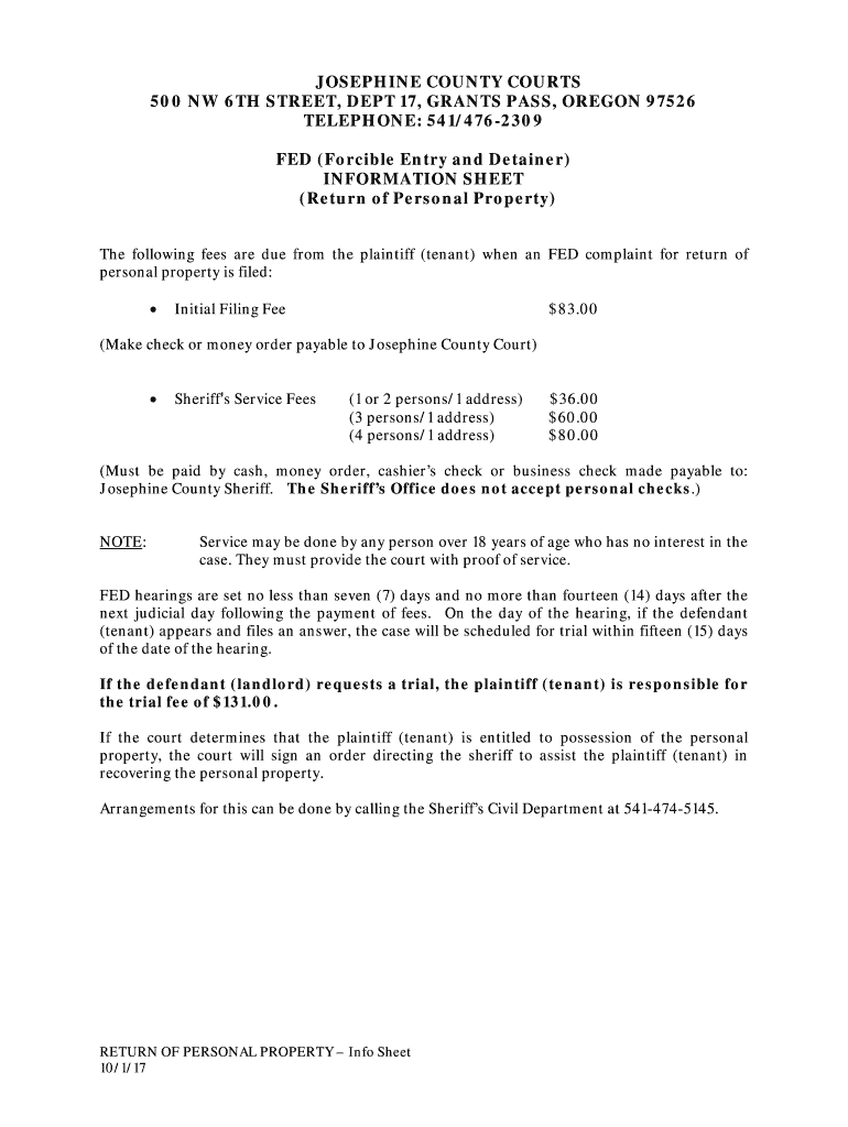 The purpose of josephine county courts 500 is to gather specific information for reporting purposes to the Josephine County courts.
