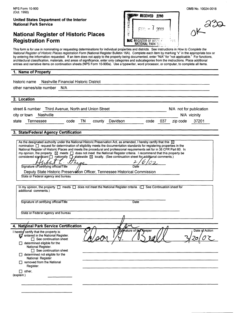 NPS Form 10900 (Oct. 1990)OMB No. 100240018(RECEIVED 2280 United States Department of the Interior National Park Service CP 7National Register of Historic Places Registration Formal REGISTER OF H!SM