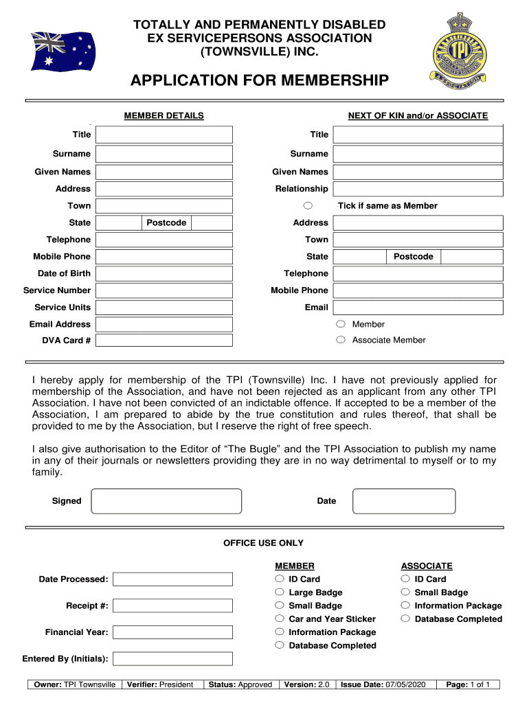 (TOWNSVILLE) INC.APPLICATION FOR MEMBERSHIP