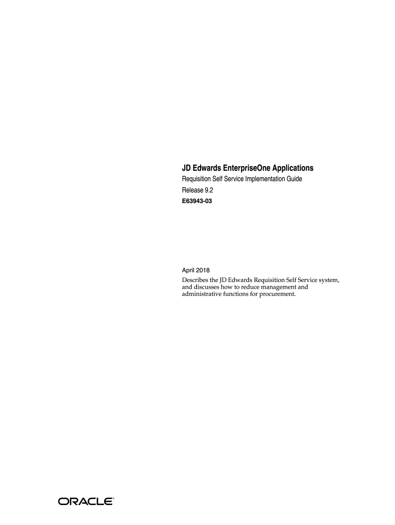 1 JD Edwards Enterprise ApplicationsRequisition Self Service Implementation Guide Release 9.2 E6394303April 2018 Describes the JD Edwards Requisition Self Service system, and discusses how to reduce