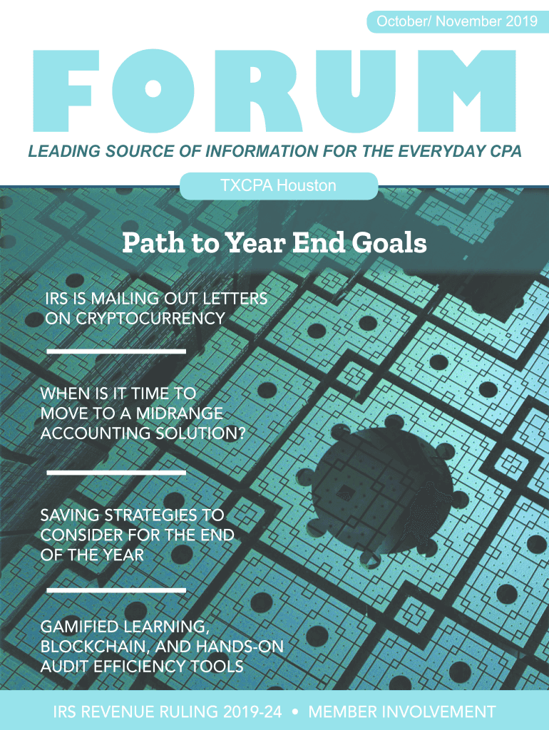 October/ November 2019LEADING SOURCE OF INFORMATION FOR THE EVERYDAY CPA TX CPA Houstonian to Year End Goals IRS IS MAILING OUT LETTERS ON CRYPTOCURRENCYWHEN IS IT TIME TO MOVE TO A MIDRANGE ACCOUNTING