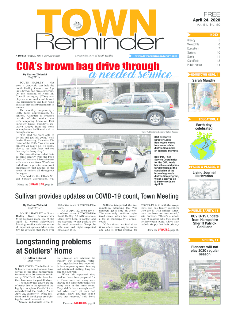 TOWN Reminder TURKEY PUBLICATIONS TURKEY PUBLICATION www.turley.comServing the town of South Hadean. Town reminder. Turkey.cocoas brown bag drive through By Dalton Bearskin Staff WriterSOUTH HADLEY
