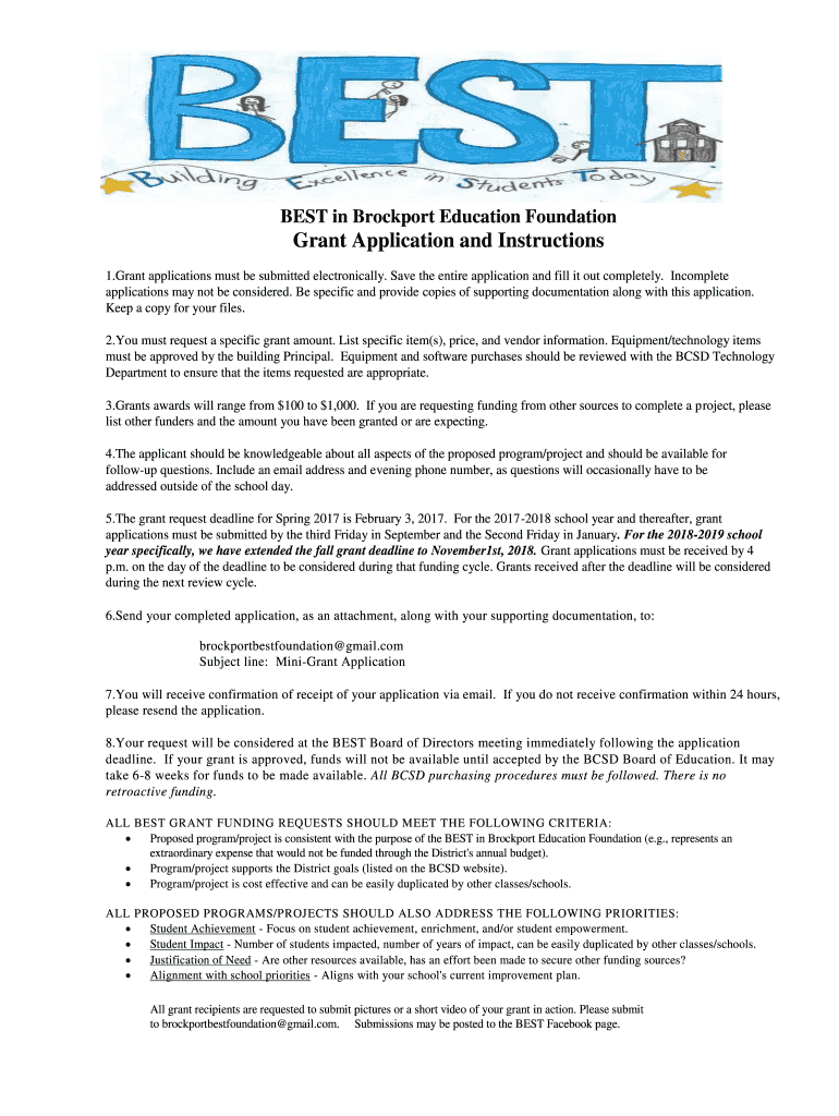 Get the free Grant Application and Instructions - Brockport Central School ...