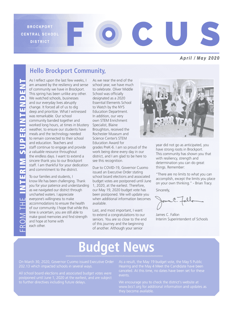 Get the free Budget News - Brockport Central School District