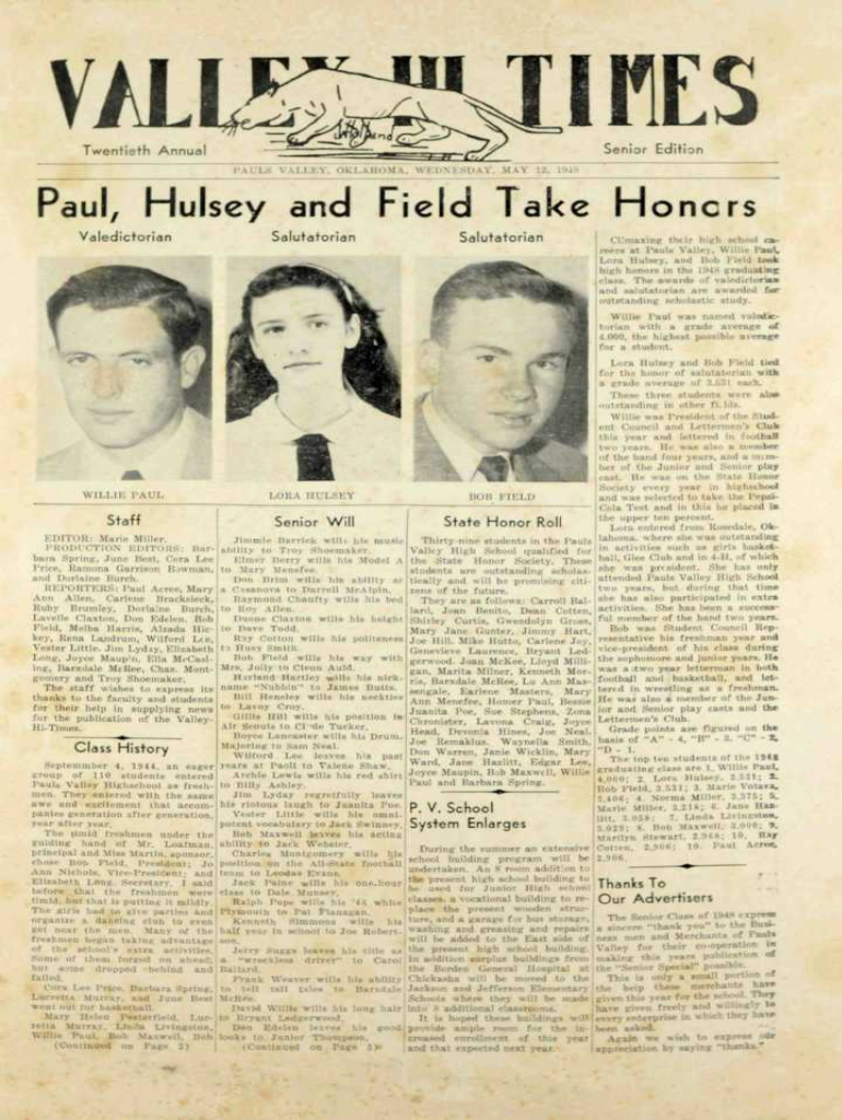 Climaxing their high school cs.... lat Paul's Valley, Willie Paul
