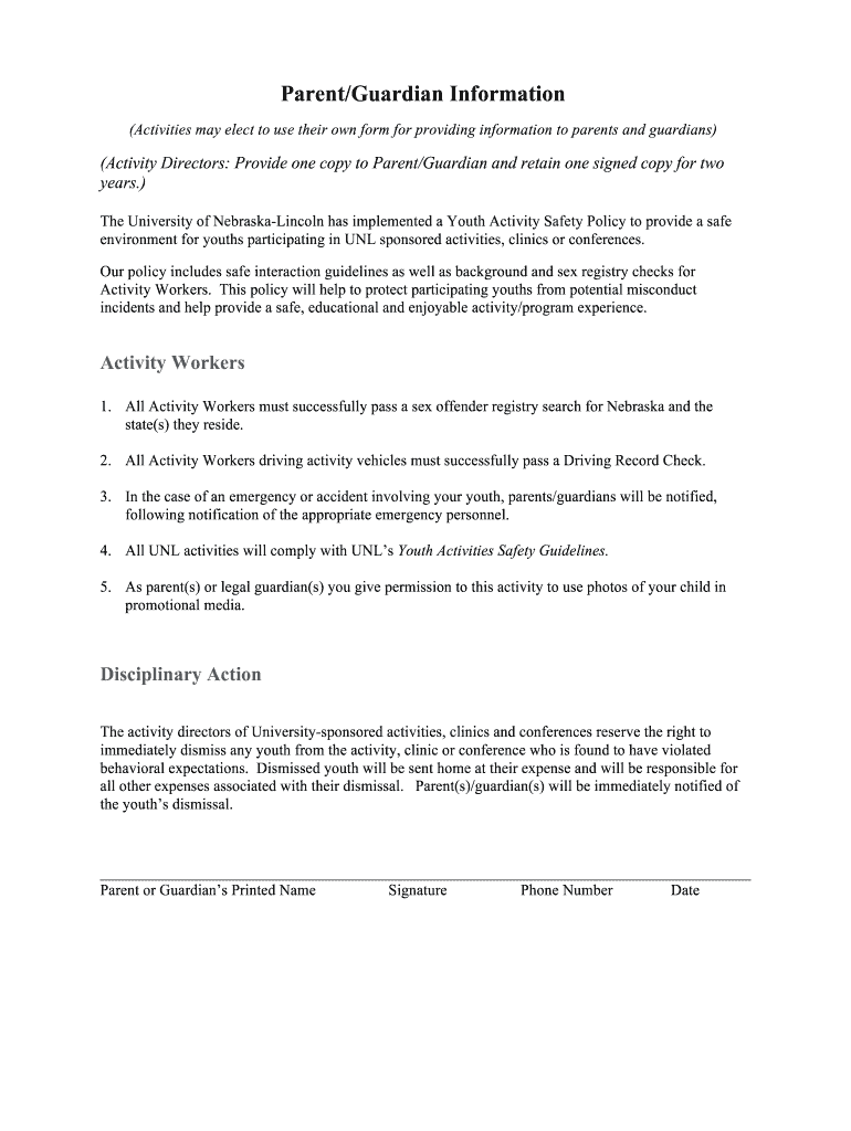 (Activities may elect to use their own form for providing information to parents and guardians)(Activity Directors: Provide one copy to Parent/Guardian and retain one signed