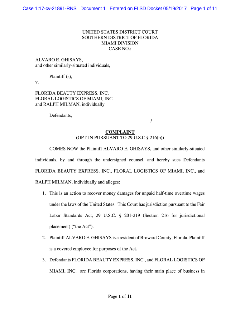 Get the free Ghisays v. Florida Beauty Express, Inc. et al - 1