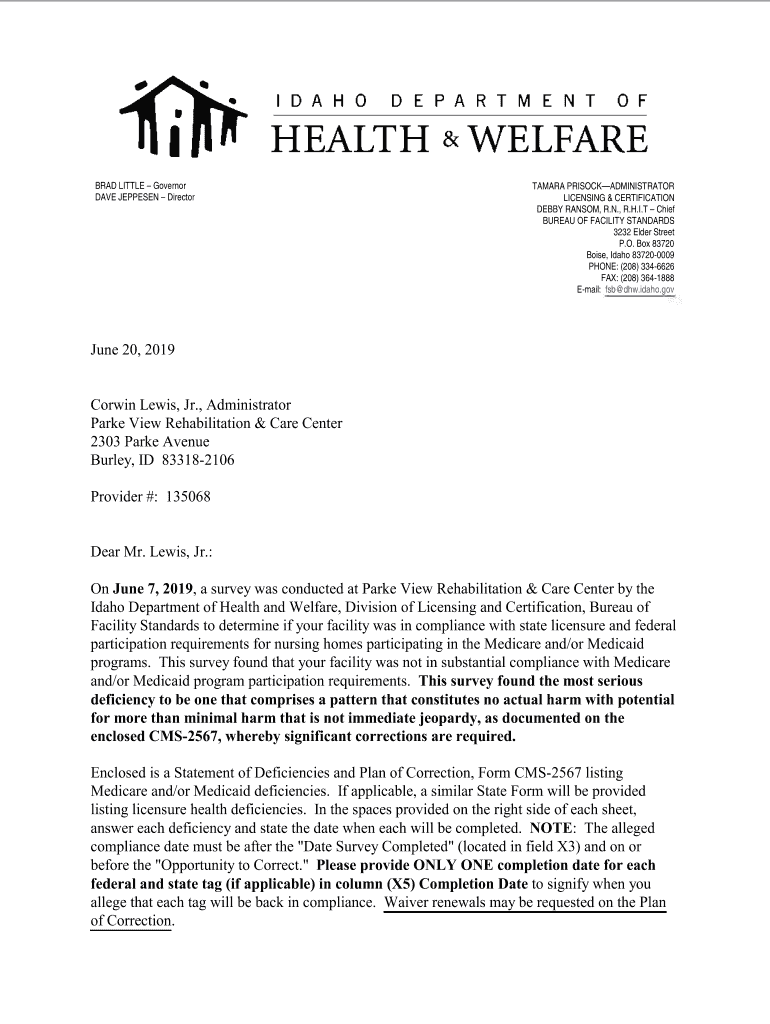IDAHODEPARTMENTOFHEALTH WELFARE BRAD LITTLE Governor DAVE REPRESENT DirectorTAMARA PRISOCKADMINISTRATOR LICENSING & CERTIFICATION DEBBY RANSOM, R.N., R.H.I.T Chief BUREAU OF FACILITY STANDARDS 3232