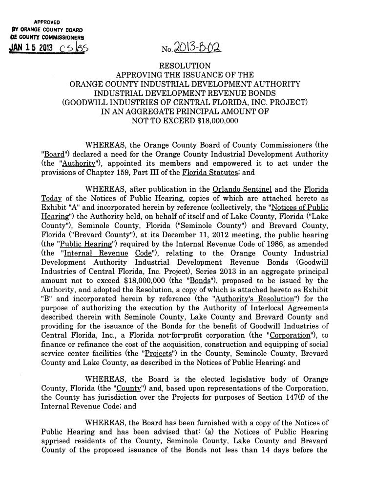 Get the free Res2013-B-02. Approving the Issuance of the Orange County Industrial Development Aut...