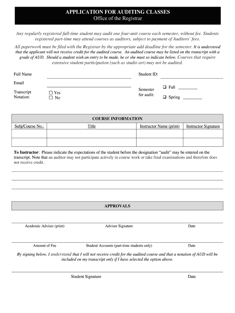 Application For Auditing Classes is not the form you're looking for?Search for another form here.