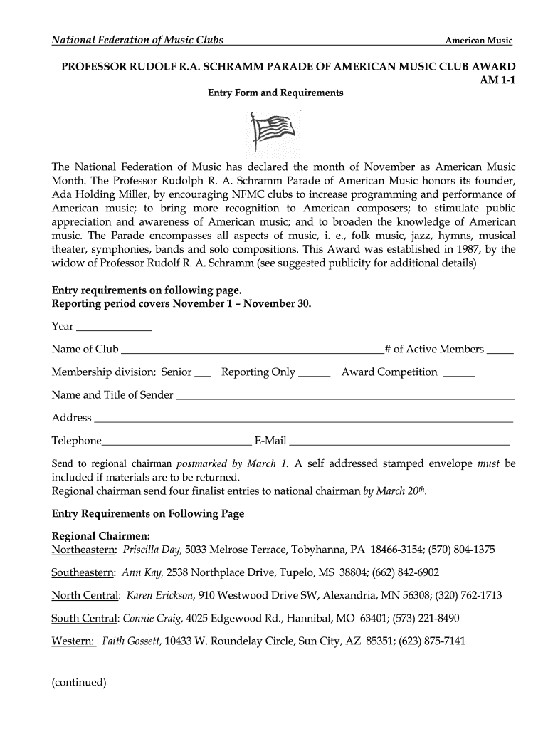 Entry Form and Requirements National Federation of Music has declared the month