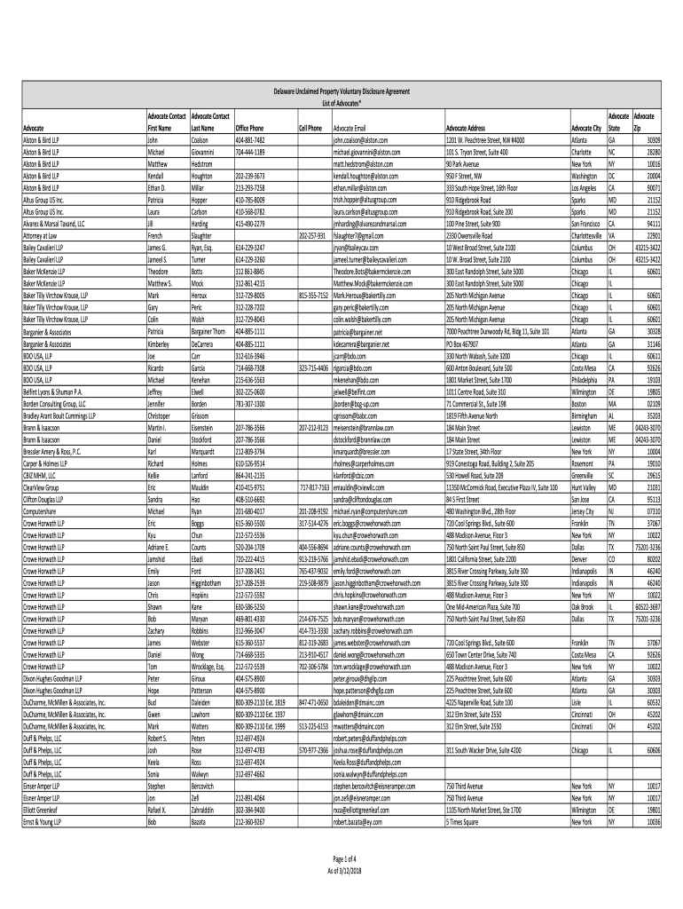 Delaware Unclaimed Property Voluntary Disclosure Agreement List of Advocates* Advocate Alston & Bird LLP Alston & Bird LLP Alston & Bird LLP Alston & Bird LLP Alston & Bird LLP Altos Group US Inc.
