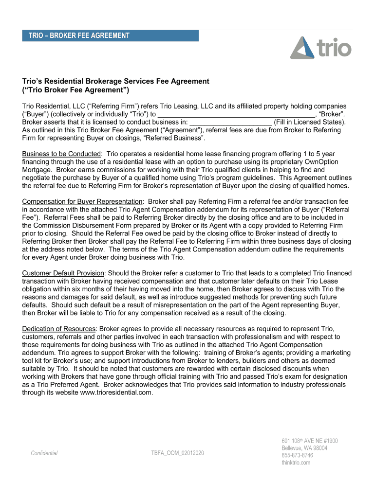 Get the free TRIOBROKER FEE AGREEMENT Trio's Residential ...